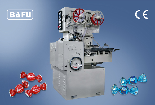 BF500 Cut and Wrap Machine is used for packing a wide variety of confectionery products, like chewy candies, toffee, gum, Bun, caramel, Milk-candy, Soft Caramel etc.The machine produces a perfect cut & wrapped product, square, oblong, cube, log shape. The maximum running speed is 500 wraps per minute, the machine as standard is fitted with an optical print registration unit. The machine is full variable in speed. The machine wraps in double twist wrap style.